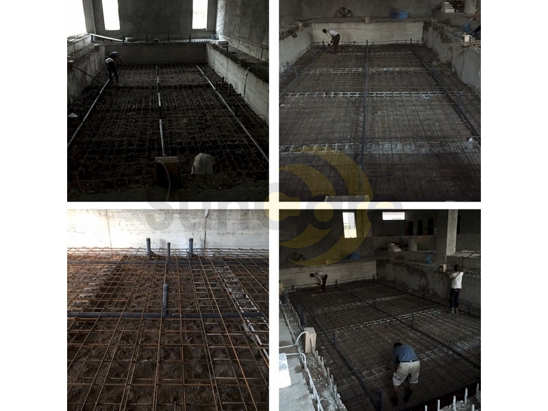 For the pools, of which concrete have constructed with C25 or C30 and basic structure have been completed, plaster and screed processes are undertaken. Now, it is the phase of ceramic implementation. The most important aspect of ceramic pools is the complete implementation of water isolation. At this stage, we apply water isolation with double components prior to ceramic tiling. We use supportive materials with flex characteristics in ceramic adhesives and joints.