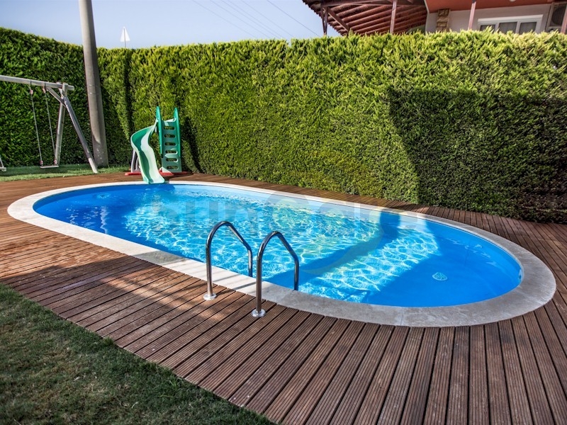 Prefabricated pools are made in oval form for ease of system installation and economical production. You will have a pool with a very aesthetic appearance in your garden. The oval form also ensures the high efficiency of the skimmer system and the ease of filtration of all water in the pool.
