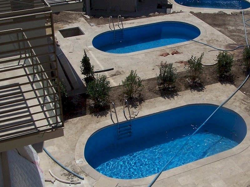 In prefabricated ponds, such as in normal overflow pools, lamp-lighting equipment, stainless / fiber ladders, sand filtration system, disinfection system, counterflow systems, water curtain, waterfall, springboard, pool water heater, slide for children are used. Even if you do not have the space for the pool machine room in your home, there are even ready-made engine room systems that can be placed in your garden.