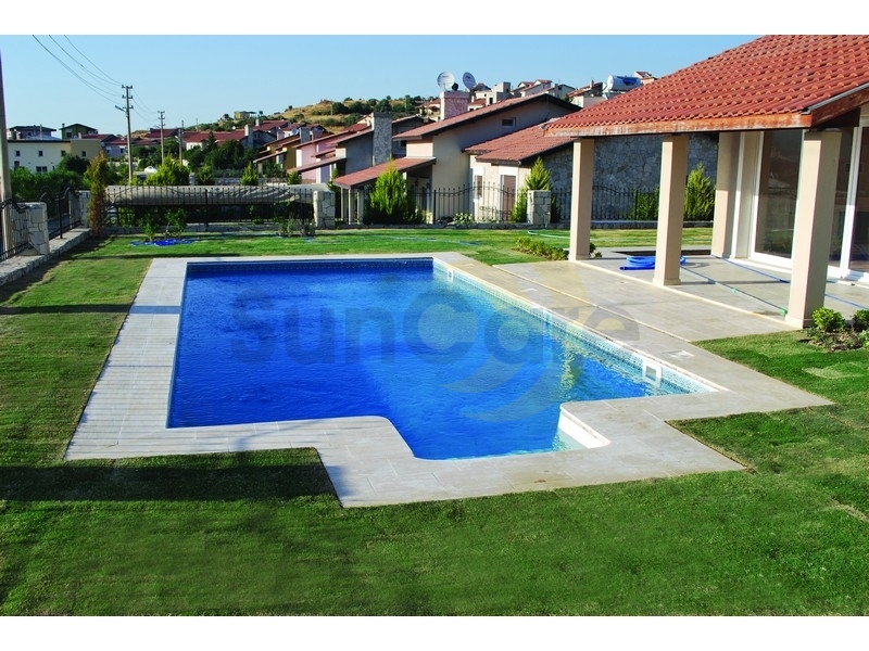 The best way to construct pools in short time and low costs is liner pools. Material called Liner is composed of pure PVC raw material. It has wide range of color and pattern alternatives.Along with ceramic, mosaic and kerb color options, it also has single color and pattern models.Its thickness is 1,5 mm. It is in competence with concrete or steel structures. Since it is a very flexible material, it is not affected by deformations deriving from surface movements. It is not thorn unless cut by purpose. In case of tearing, it can easily be repaired even when the pool is full.