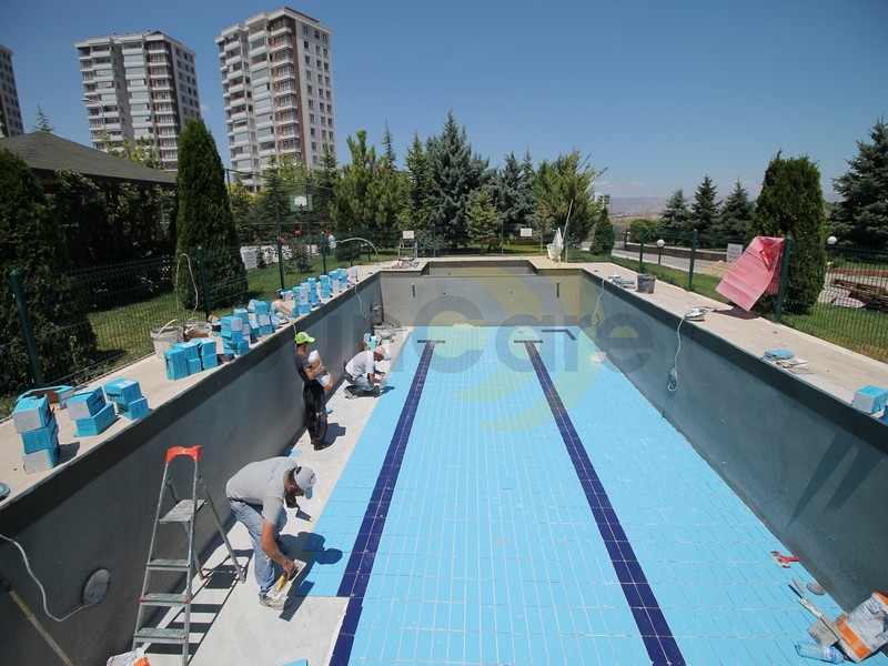 Havuzun yapımı için işe başlayan ekibimiz su kaçaklarını yok edip havuzu tamamen yeniledi.