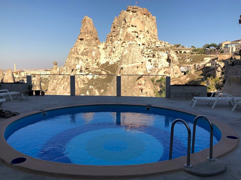 Havuz yapım işlerimiz hız kesmeden devam ediyor. Nevşehir'in dünyaca ünlü Kapadokya Bölgesi'nde Uçhisar'da bulunan Hermes Cave Hotel 'in yüzme havuzu SunCare Spa tarafından yapıldı.