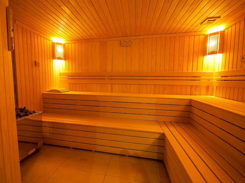 Sauna ahşapları olarak komple Afrika Ayous cinsi ahşaplar kullanılan projede, sauna ısıtıcısı olarak %100 yerli imalatımız olan SunCare sauna sobası kullanılmıştır.
