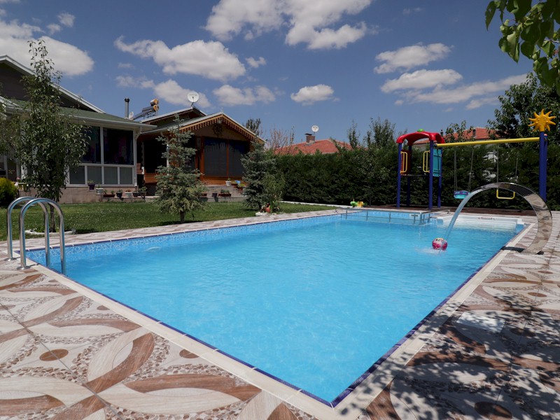 Ankara Sirkeli Mahallesi'nde ikamet eden M.G. villasının havuz yapım işleri için firmamız SunCare Spa 'yı tercih etti. Hafriyattan beton işlerine, panel kurulumundan liner kaplamasına, makine dairesinden çocuk havuzuna kadar tüm işlemleri anahtar teslim olarak yapılıp teslim edildi.