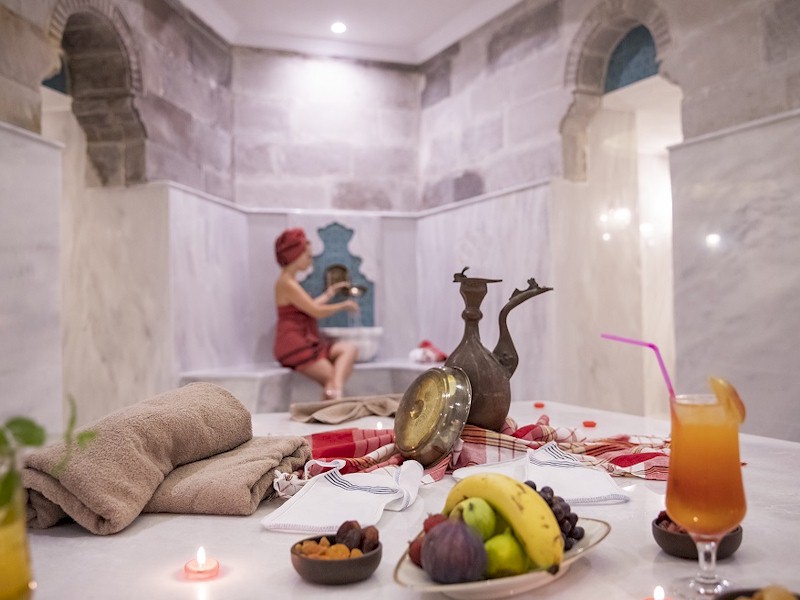 Spa merkezinde bulunan yüzme havuzu, sauna ve masaj odaları da yine SunCare tarafından imal edilmiştir.
