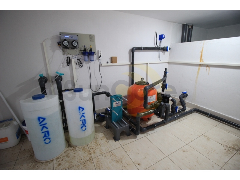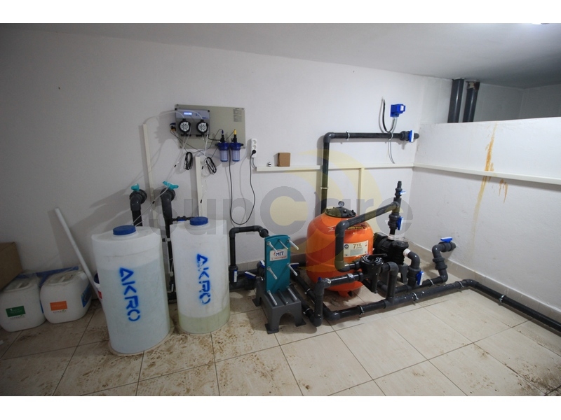 Alt kısma konumlandırılan makine dairesi ve denge deposu sayesinde havuz gezinme terasında daha ferah bir görünüm sağlandı.