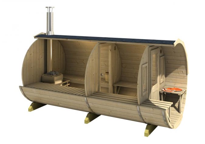 Dış mekan saunalar su geçirmez ve farklı iklim koşullarından etkilenmez. Dış mekan bahçe saunalarının ısıtılması için ister elektrikli sauna ısıtıcısı isterseniz orjinal Finlandiya ya da Rus saunaları gibi odunlu sauna sobaları kullanabiliyoruz.
